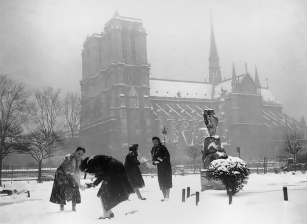 Bataille de boules de neige en face Notre Dame de Paris à la fin du mois de décembre 1938 – Météo-Villes