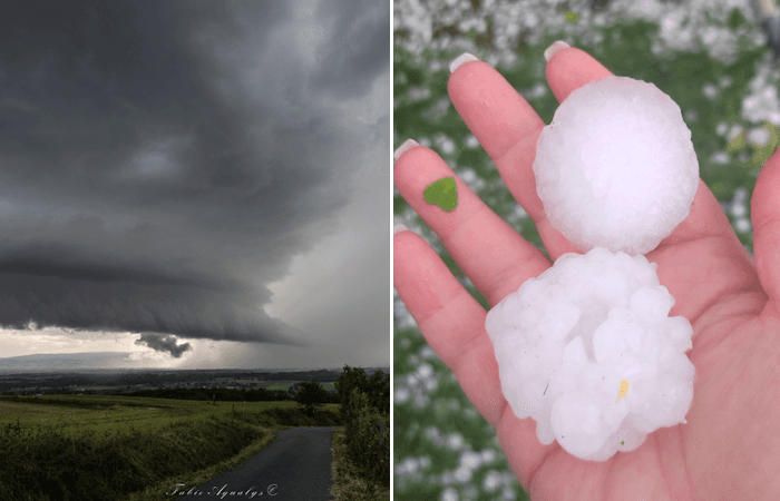 De nouveaux orages supercellulaires ont éclaté dans la Loire en après-midi du mardi 3 juin 2025. De gros grêlons sont tombés, touchant parfois des communes déjà sinistrées deux jours plus tôt !