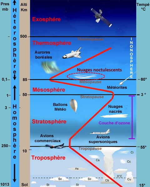 Schéma des différentes couches de l'atmosphère - via lavionnaire.fr