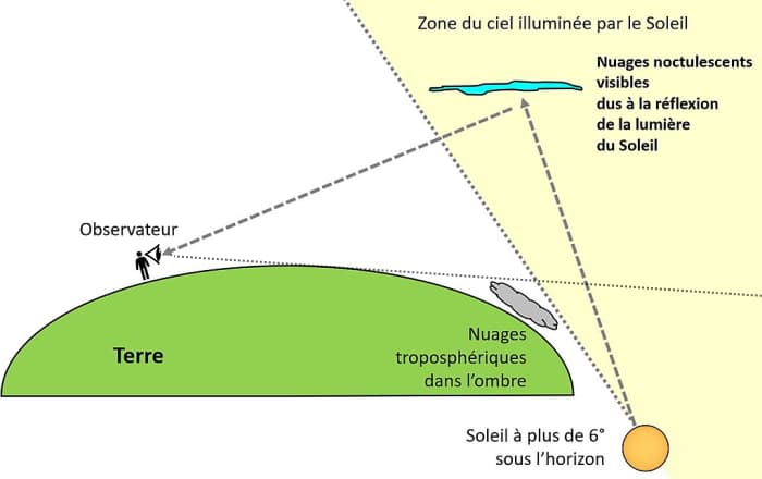 Schéma montrant les conditions d'observation des nuages noctulescents - via Wikipedia