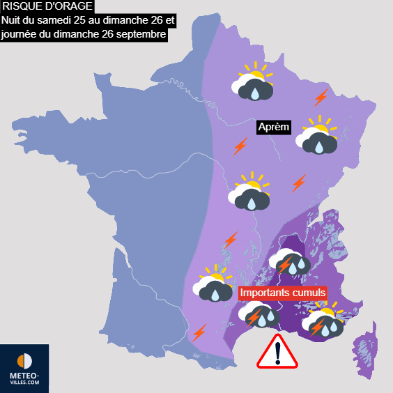 Carte du risque orageux pour la journée du samedi 25 septembre 2021 - Météo-Villes
