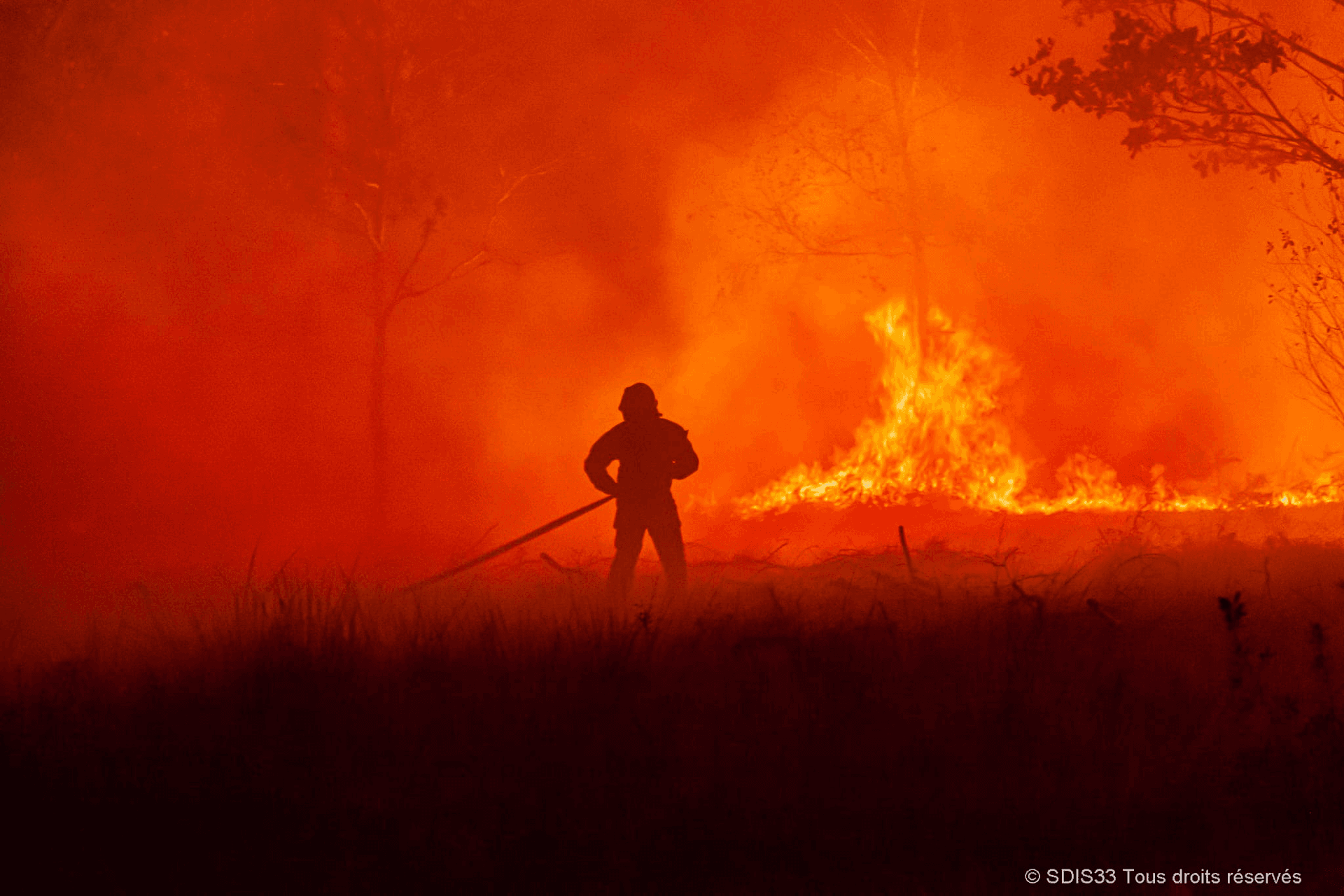 Lutte contre l'incendie de Saumos (Gironde) en nuit du mardi 13 au mercredi 14 septembre 2022 - photo SDIS33