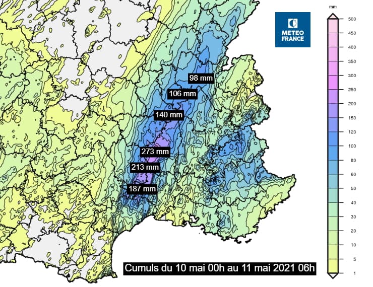 Pluies abondantes au sud-est le 10 mai 2021 : des records et des crues