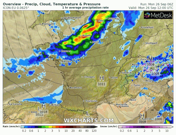 Animation des précipitations du lundi 26 septembre au samedi 1er octobre 2022 - via wxcharts.com