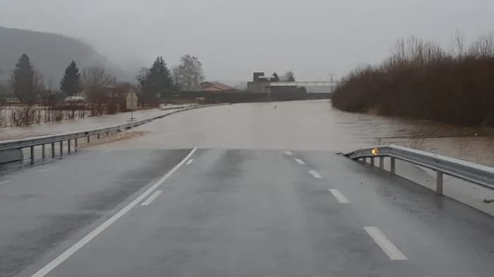 Route coupée par la crue du Salat à Prat-Bonrepaux (09) le 10 janvier 2022 - via CD09