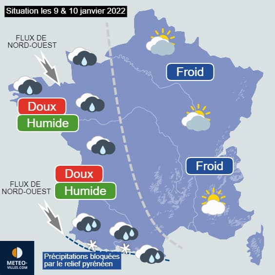 Situation en France durant les journées du dimanche 9 et lundi 10 janvier 2022 - Météo Villes