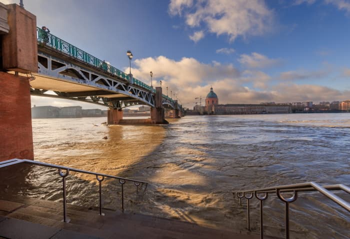 L'onde de crue de la Garonne s'est rapidement propagée vers le nord en atteignant Toulouse où le pic fut atteint en début de matinée du mardi 11 janvier 2022. Avec une côte de 4,31 mètres au Pont Neuf, Toulouse a connu sa crue la plus importante depuis celle de juin 2000 (4,38m à l'époque) ! Les quais de la Garonne ont été engloutis par les eaux du fleuve, dont le débit affichait une puissante impressionnante !