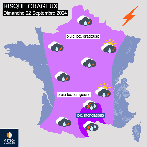 Cartes du risque orageux pour le dimanche 22 septembre 2024 - Météo Villes