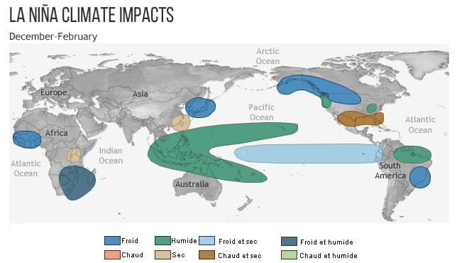 La Nina : des modifications locales du climat sur de multiples continents