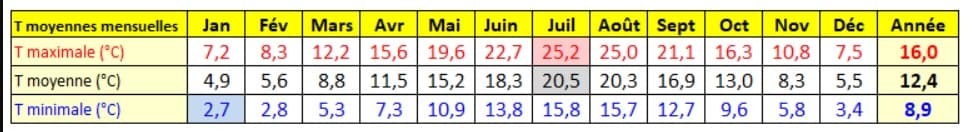 Moyennes mensuelles à Paris-Montsouris – tableau extrait de la page meteo-paris.com sur le climat de l'IDF