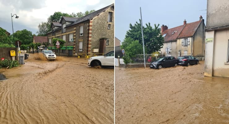 Coulées de boue dans les rues de Longperrier en Seine-et-Marne le mercredi 2 juin 2021 - via Nationale 2 Infos