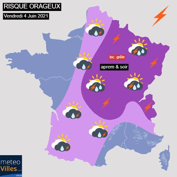 Prévision du risque orageux pour le vendredi 4 juin 2021 - Météo Villes
