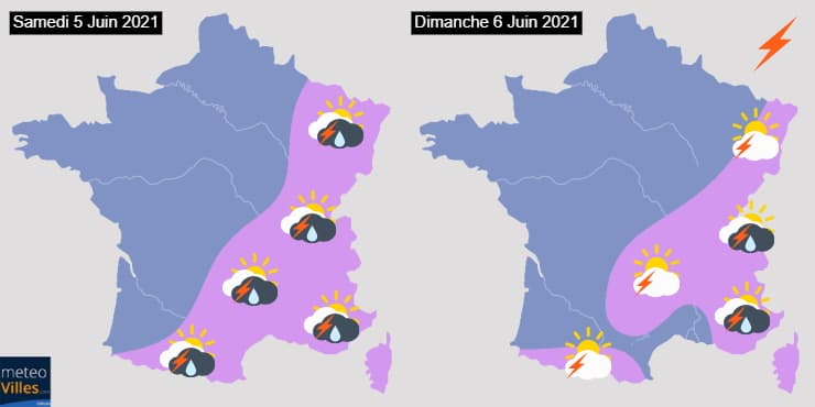 Prévision du risque orageux pour les samedi 5 et dimanche 6 juin 2021 - Météo Villes