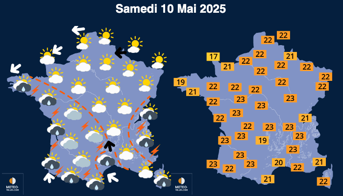 Par conséquent, le temps sera plus stable en allant vers le nord-est de la France et plus instable en allant vers le sud-ouest.