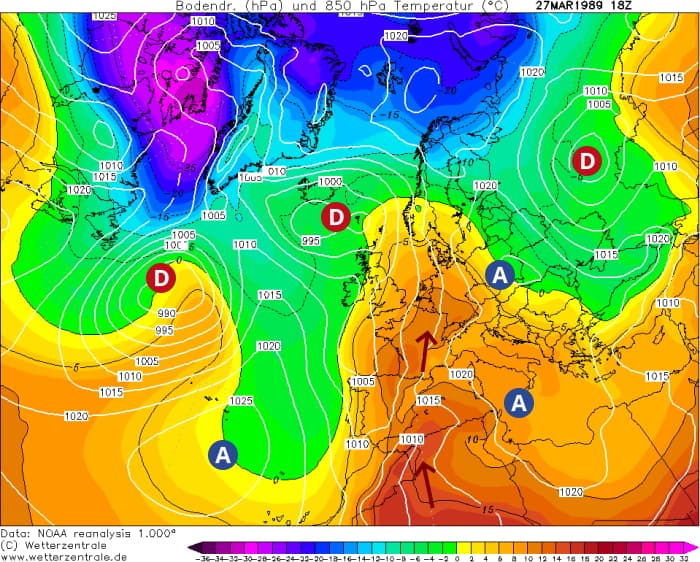 Situation à échelle continentale le 27 mars 1989 - via Wetterzentrale