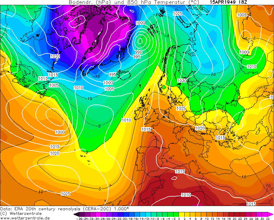 Réanalyse des masses d'air à la mi-avril 1946 - via wetterzentrale.de