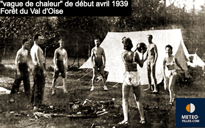 L'un des épisode de chaleur précoce les plus marquants datant du siècle dernier s'est produit du 10 au 13 avril 1939. À quelques mois du début de la seconde guerre mondiale, le thermomètre s'était envolé vers des niveaux estivaux en première quinzaine d'avril, surprenant les Français. La barre des 25°C avait été dépassée dans de nombreuses régions. On avait pu mesurer 27°C à Strasbourg et Orléans, 28°C à Paris et 30°C à Bergerac ! Cette chaleur avait provoque une fonte des neiges en haute montagne avec des avalanches et des coulées de boue meurtrières dans les Alpes et les Pyrénées.