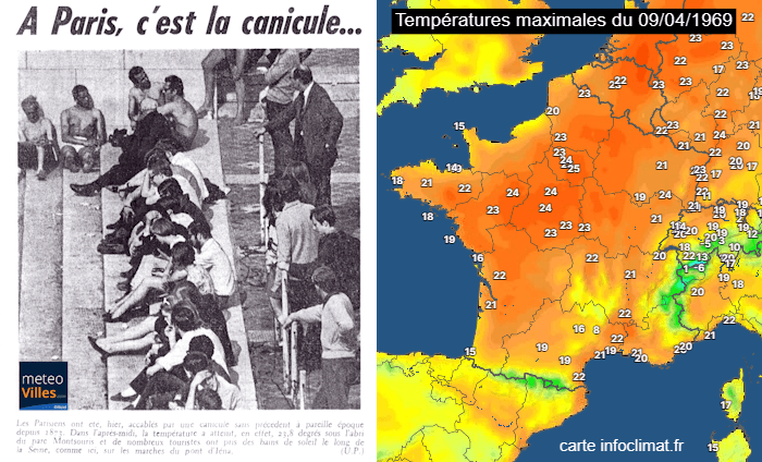 Températures élevées en France à la fin du mois d'avril 1969 - Chronique Météo Villes & infoclimat.fr