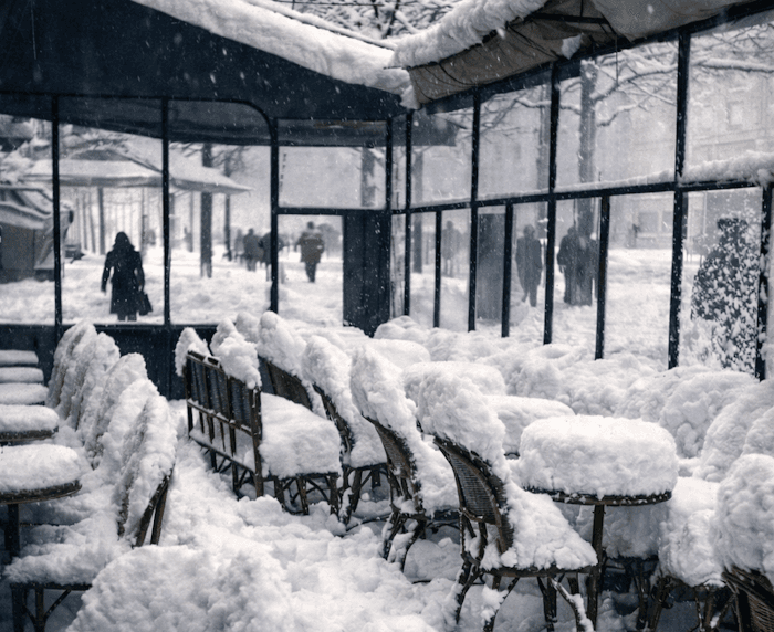 Terrasses parisiennes croulant sous la neige début mars 1946Chronique Météo Villes