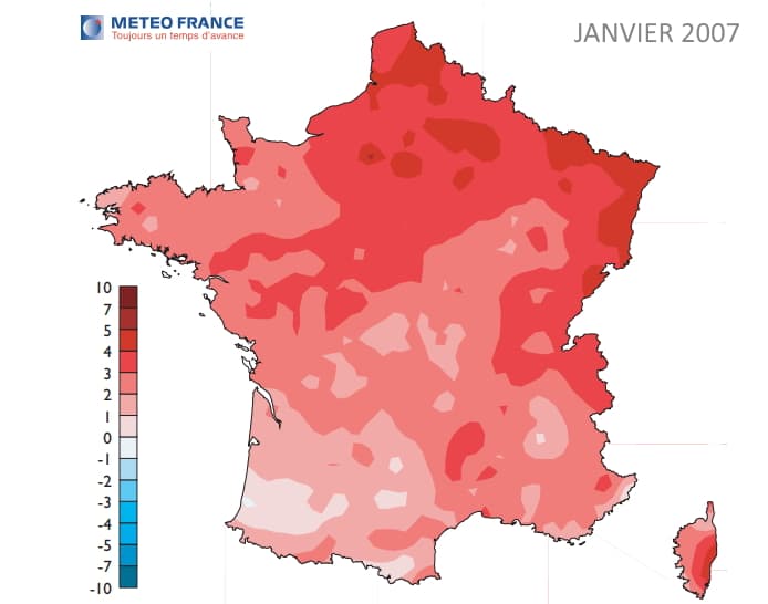 Anomalie thermique en France au cours du mois de janvier 2007 - via Météo France