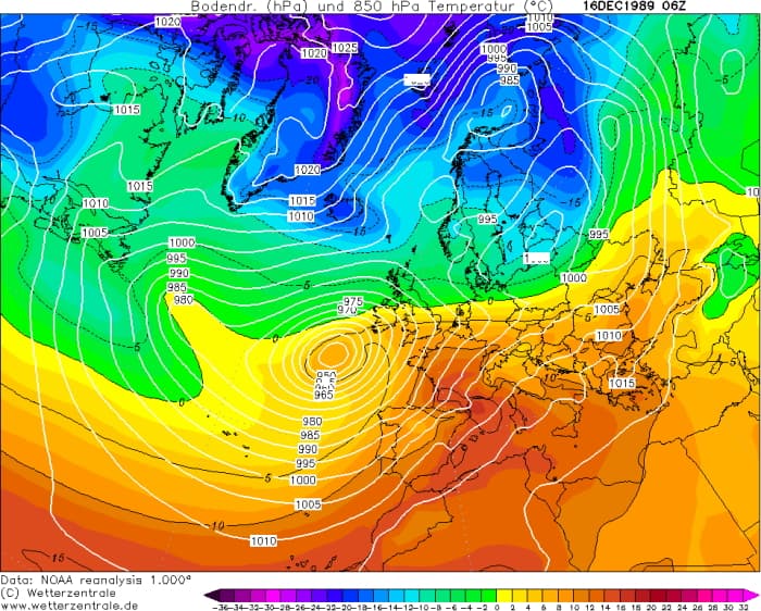 Réanalyse de la situation à échelle continentale le 16 décembre 1989 - via wetterzentrale.de