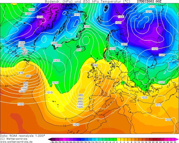 Réanalyse de la situation à échelle continentale le 27 décembre 2002 - via wetterzentrale.de