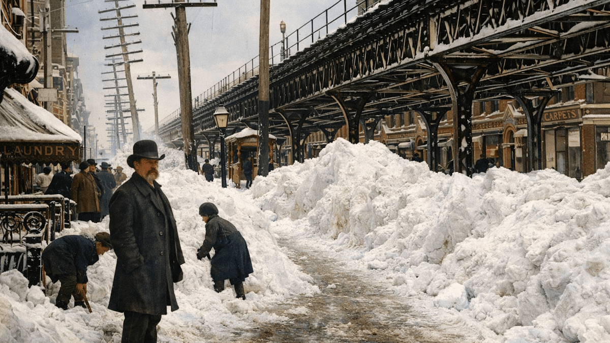 En terme de conséquences directes, il s'agit de la tempête de neige la plus dévastatrice de l'histoire de New York ! Et pourtant, elle ne se classe qu'au 4ème rang en terme de quantité de neige tombée avec un cumul de 53 cm sur la ville. Malgré tout, elle est marquée par des vents très violents, ayant formé des congères atteignant parfois 1 à 2 mètres au cœur de la ville ! À l'époque, il n'y a pas de prévision météo et personne ne se prépare à cet épisode. La ville s'en trouve paralysée et les lignes électriques sont endommagées. Cette tempête causera plus de 400 décès, dont environ 200 à New York City.