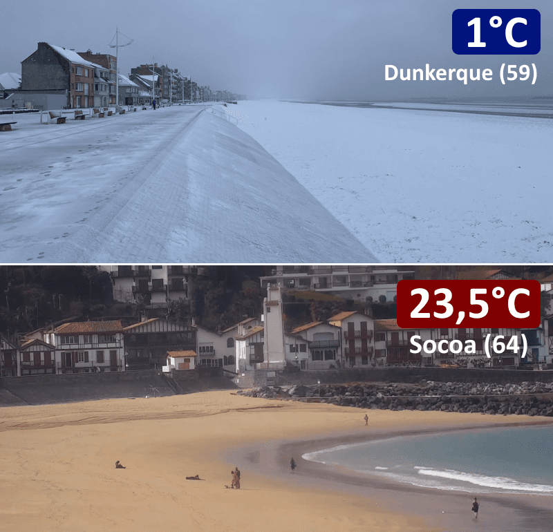 Contraste entre Dunkerque et le Pays Basque ce mercredi 8 mars 2023 à midi - Alexandre Slowik & Viewsurf