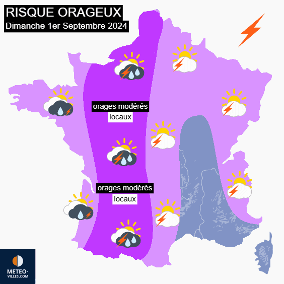 Carte du risque orageux pour le dimanche 1er septembre 2024 – Météo Villes