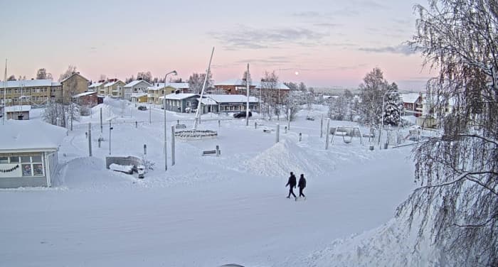 De son côté, la ville de Pajala en Suède se situe à une latitude de 67,2°N, soit légèrement au nord du cercle polaire. Cela signifie que le Soleil ne s'y est pas levé ce mardi 21 décembre 2021. Il a cependant approché l'horizon, offrant ainsi une clarté crépusculaire le temps de trois petites heures, visible sur la webcam ci-dessous. Un semblant de jour...