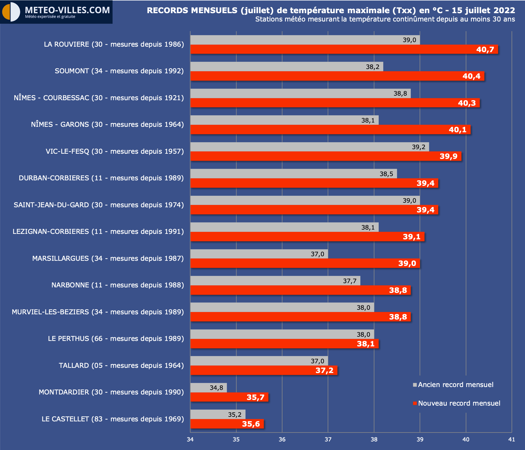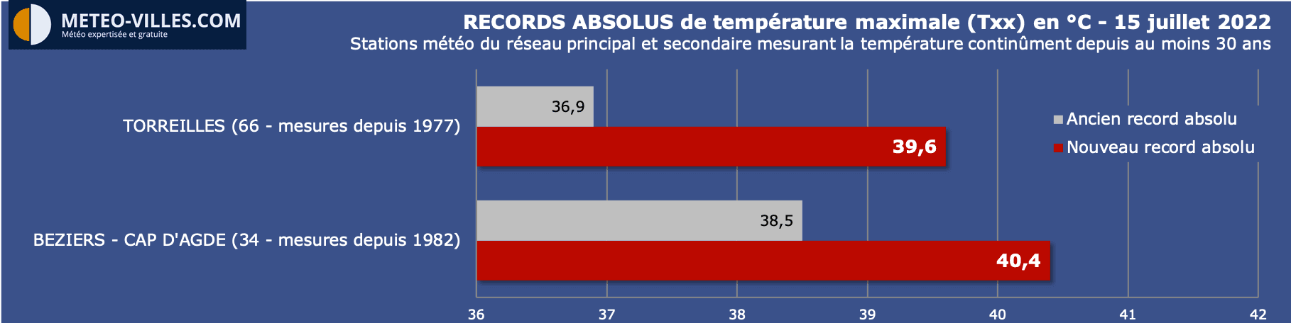 • 40.5°C à Argeliers (Aude)