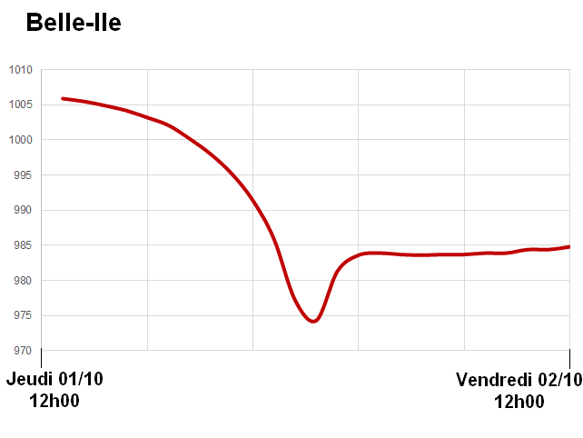 Importante chute de pression à l'approche de la tempête Alex à Belle-Ile (Morbihan) - Via keraunos.org