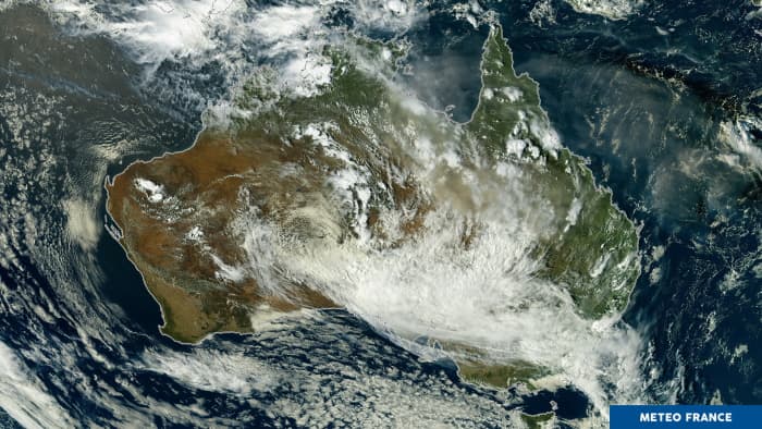 Nuage de cendres du volcan Hunga Tonga visible dans le nord-est de l'Australie ce 17 janvier 2022 - via Météo France
