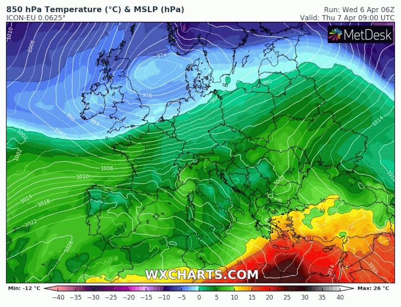 Animation de la masse d'air vers 1500m du jeudi 7 au samedi 9 avril 2022 - via wxcharts.com