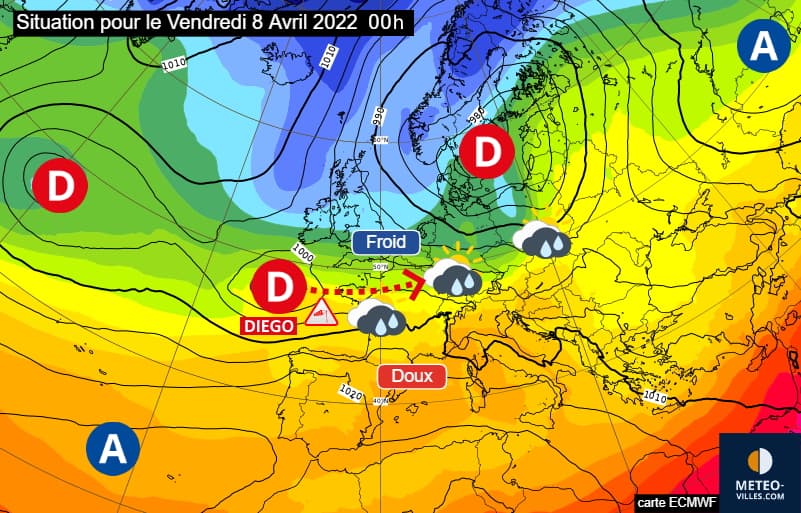 Les deux prochains jours seront agités entre fortes pluies, vents violents et risque de neige. Il conviendra de surveiller attentivement la tempête Diego pour le vendredi 8 avril 2022. Le centre-ouest est le plus exposé.
