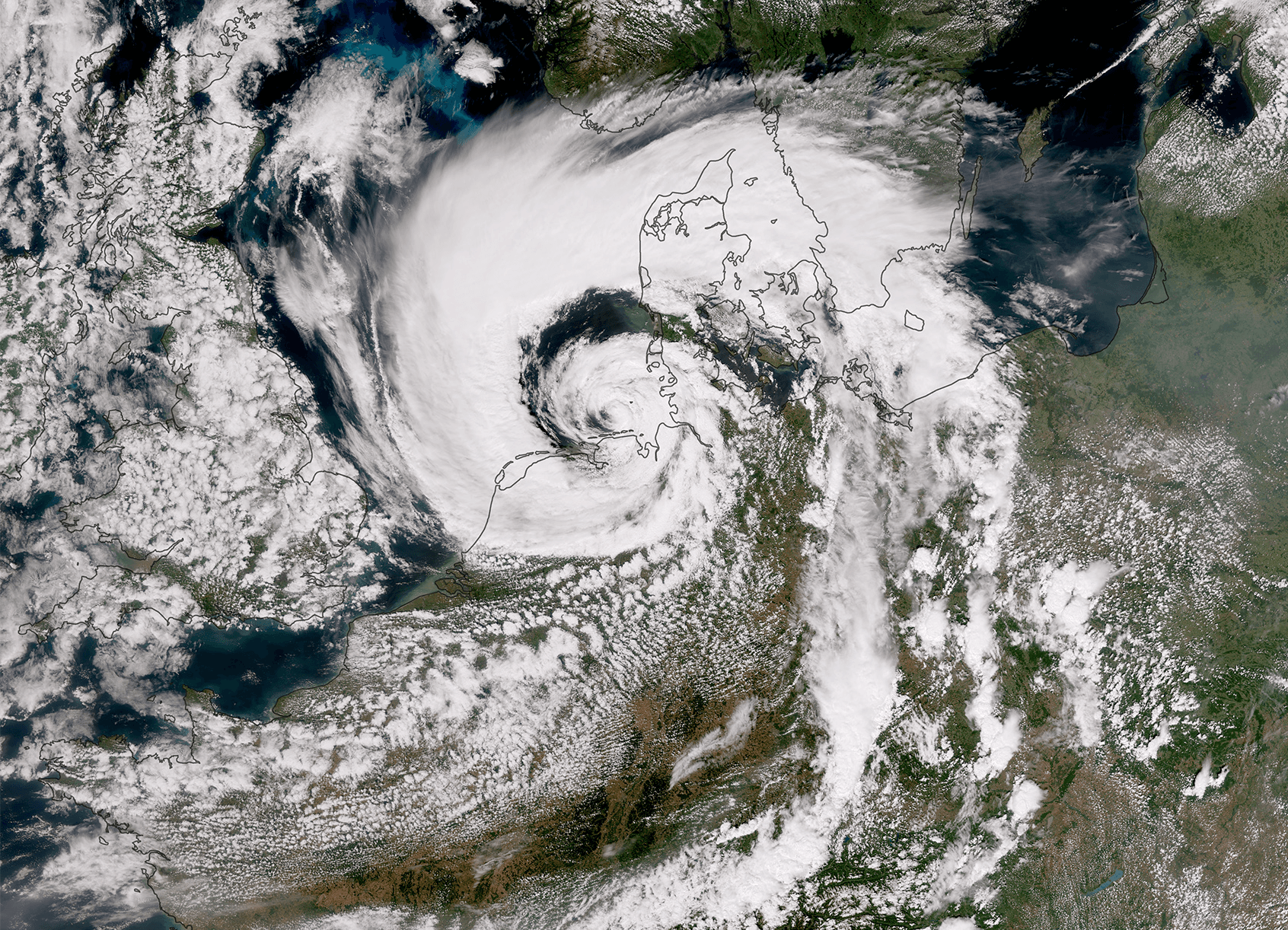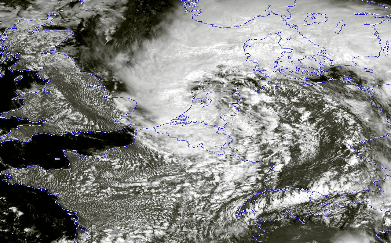 Image satellite de la tempête Poly entre les Pays-Bas et le Danemark ce mercredi 5 juillet 2023 - via SUOMI-NPP