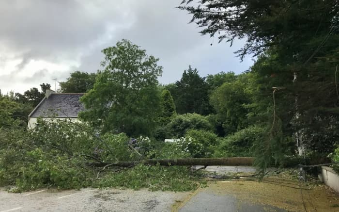 De nombreuses chutes d'arbres ont été observées sur l'ouest de la Bretagne, notamment dans le département du Finistère. Elles ont privé d'électricité 4.000 foyers en matinée du 6 juillet 2021, dont 2.700 dans le Finistère, 1.000 dans les Côtes-d'Armor, 200 dans le Morbihan et 100 en Ille-et-Vilaine.