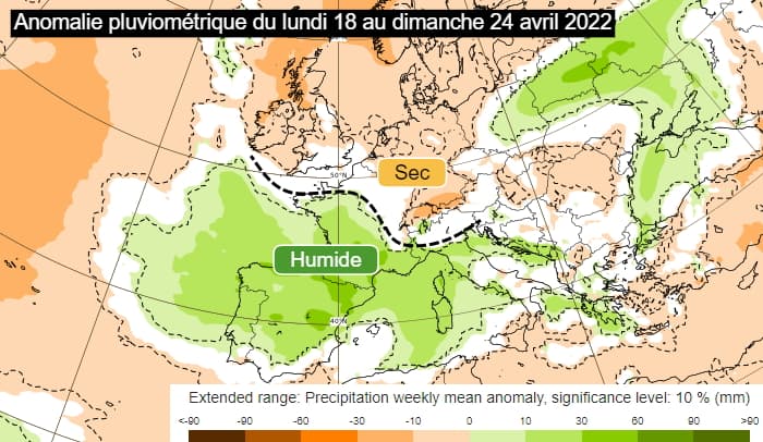 Anomalies pluviométriques en Europe du lundi 18 au dimanche 24 avril 2022 - via ECMWF