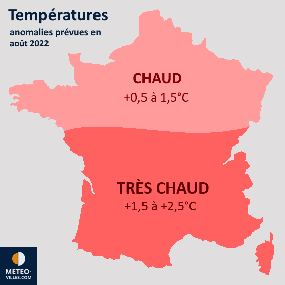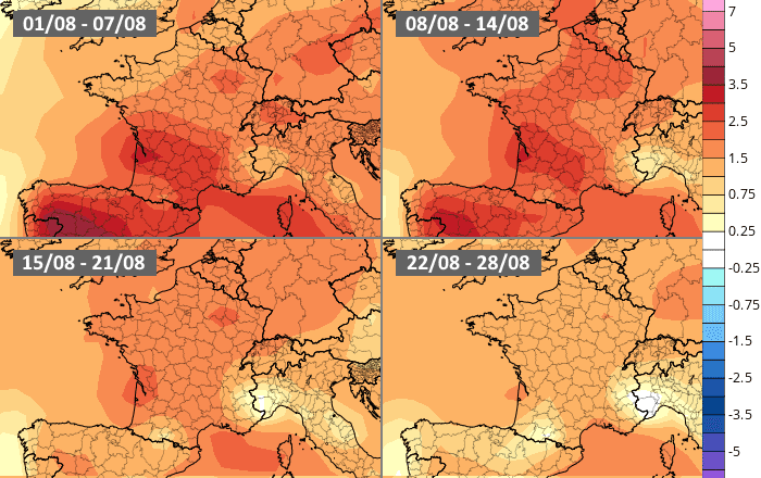 Projection de l'anomalie thermique en août 2022 - Météo Villes