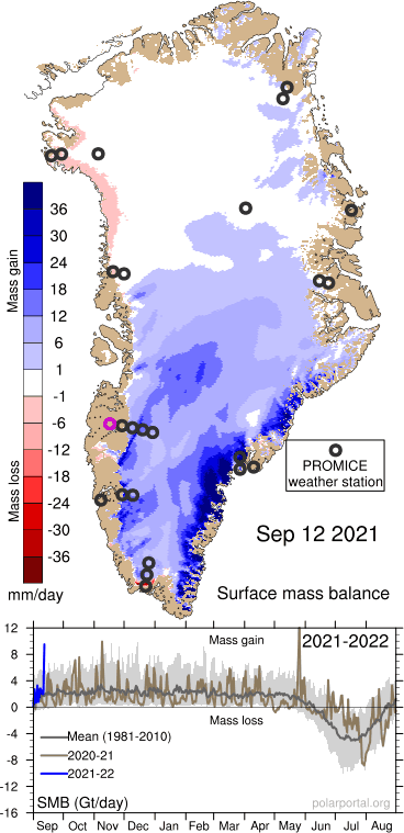 Gain de masse neigeuse sur le Groenland au passage du cyclone post-tropical Larry - Via Twitter @TonyPannWABL