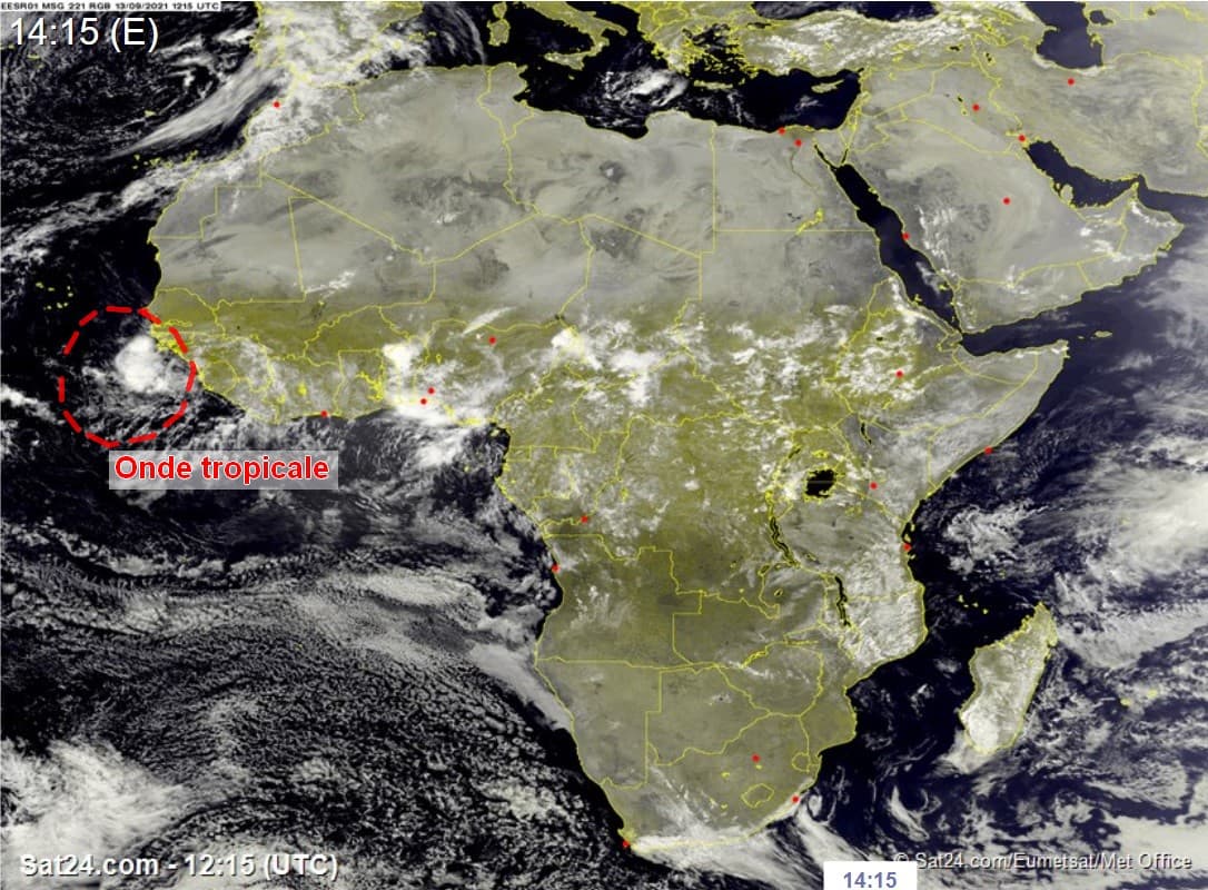 Le temps est globalement de saison ces derniers jours sur le continent Africain avec des orages et de fortes précipitations sur le centre de l'Afrique, pouvant entraîner la formation d'ondes tropicales sur l'Atlantique pouvant ensuite évoluer en système tropical dans les jours suivants. L'une d'elle est d'ailleurs placée sous surveillance au large de la Guinée, ayant 80% de chance de se renforcer dans les prochains jours.