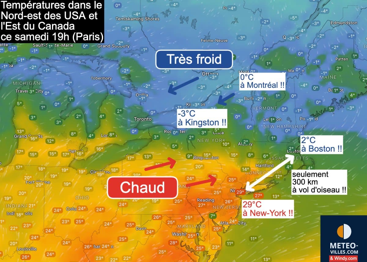 Impressionnant gradient thermique sur le Nord-Est des Etats-Unis en journée du 29 mars 2025 – Météo-Villes