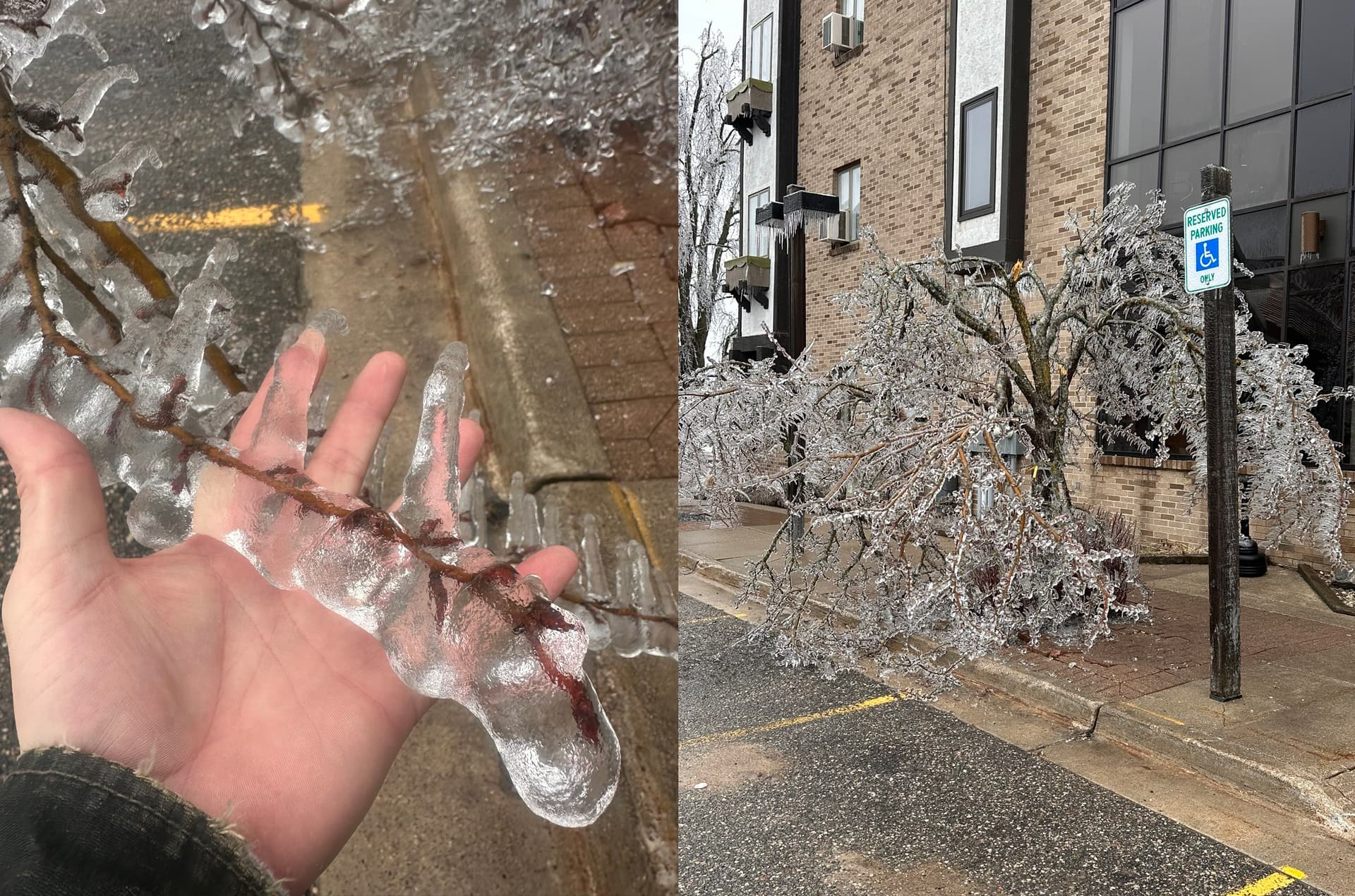 Impressionnante couche de glace suite à des pluies verglaçantes à Gaylord dans le Michigan ce 30 mars 2025 – Via Twitter @ironpigsmoke