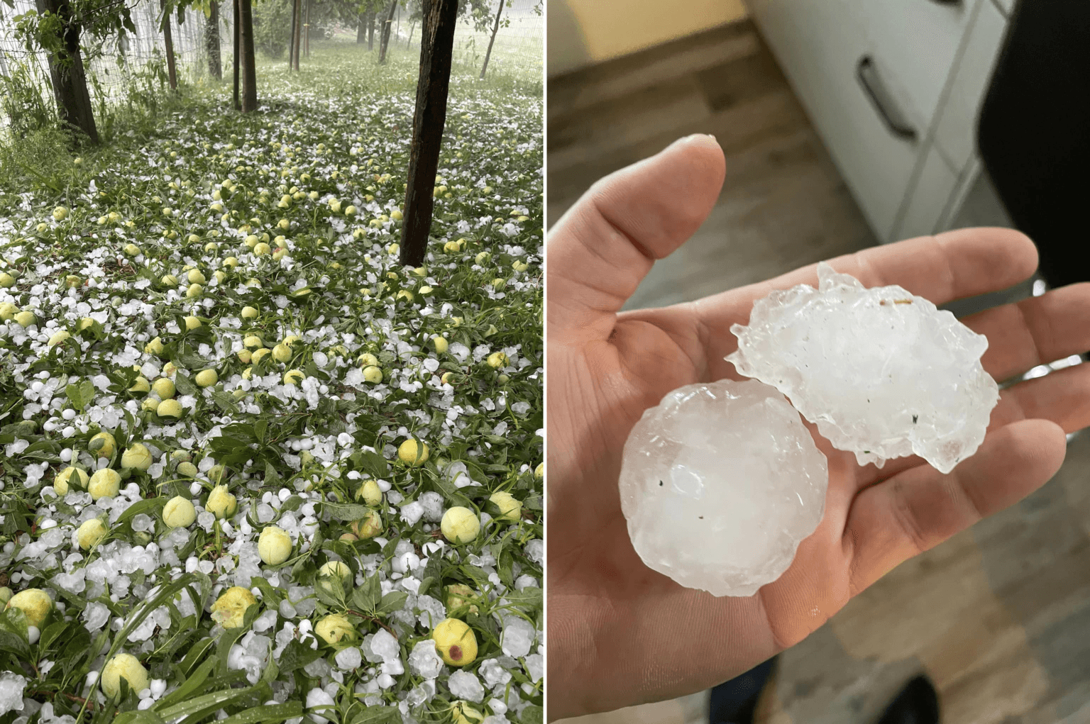 Vergers ravagés par de gros grêlons à Itxassou (64) le mardi 20 juin 2023 – photos Atelier Massonde