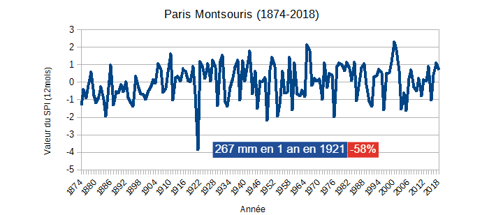 La région parisienne fut l'une des plus concernées par cette sécheresse historique. Durant l'ensemble de l'année 1921, il n'était tombé que 267 mm de pluie sur la capitale, soit un déficit annuel record de 58% ! Une telle anomalie sèche sur une année entière ne s'est plus reproduite au cours des 100 années suivantes. Même en cette année 2022 anormalement calme et sèche, le cumul des sept premiers mois de l'année à Paris a déjà dépassé celui de toute l'année 1921 (273 mm de janvier à juillet 2022).