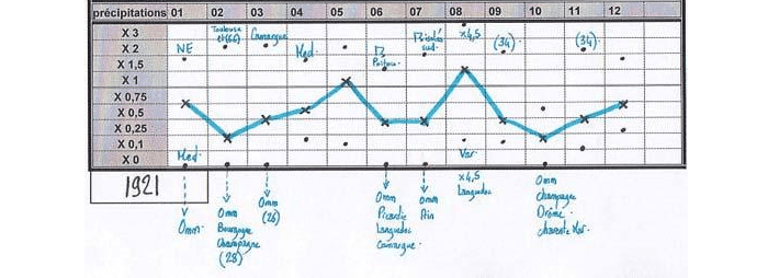 Anomalies pluviométriques mensuelles en France en 1921 - Chronique Météo Villes