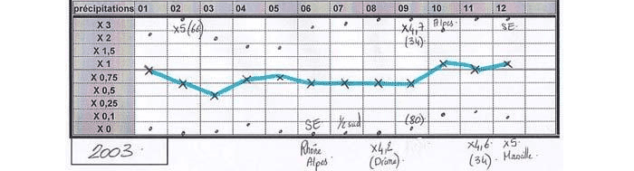 Anomalies pluviométriques mensuelles en France en 2003 - Chronique Météo Villes