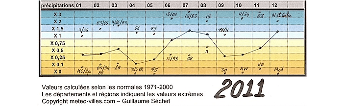 Anomalies pluviométriques mensuelles en France en 2011 - Chronique Météo Villes
