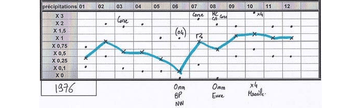 Anomalies pluviométriques mensuelles en France en 1976 - Chronique Météo Villes