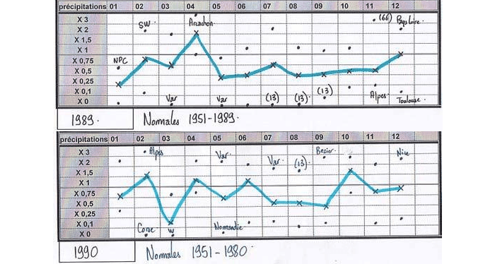 Anomalies pluviométriques mensuelles en France en 1989 et 1990 - Chronique Météo Villes